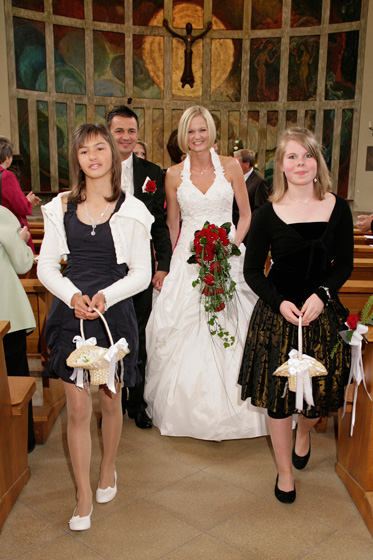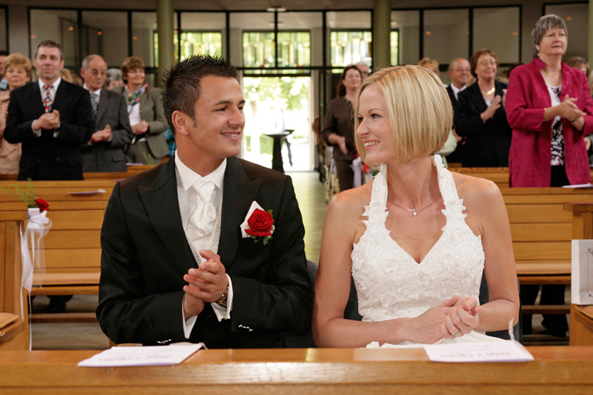 Die kirchliche Trauung fand in der Kath. St. Chrysanthus u. Daria in Haan statt.
