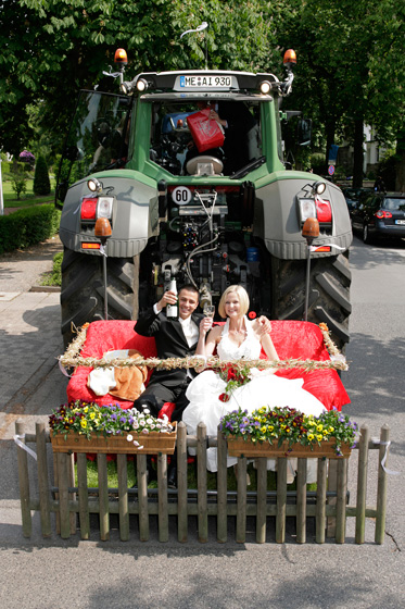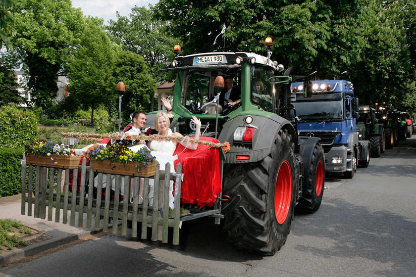 Danach ging es in einem Traktoren Konvoi, auf dem die beiden in luftiger Höhe in der ersten Reihe saßen, zum Gut Mydlinghoven.